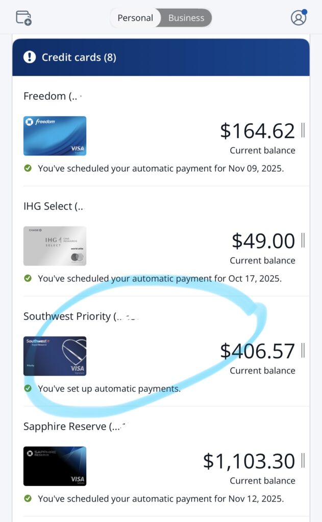 Chase doesn't make it easy to find out if you've used your benefits and the process varies by benefit. To find any of this information, you'll first need to log into the Chase app or go to their website and find your Southwest card.