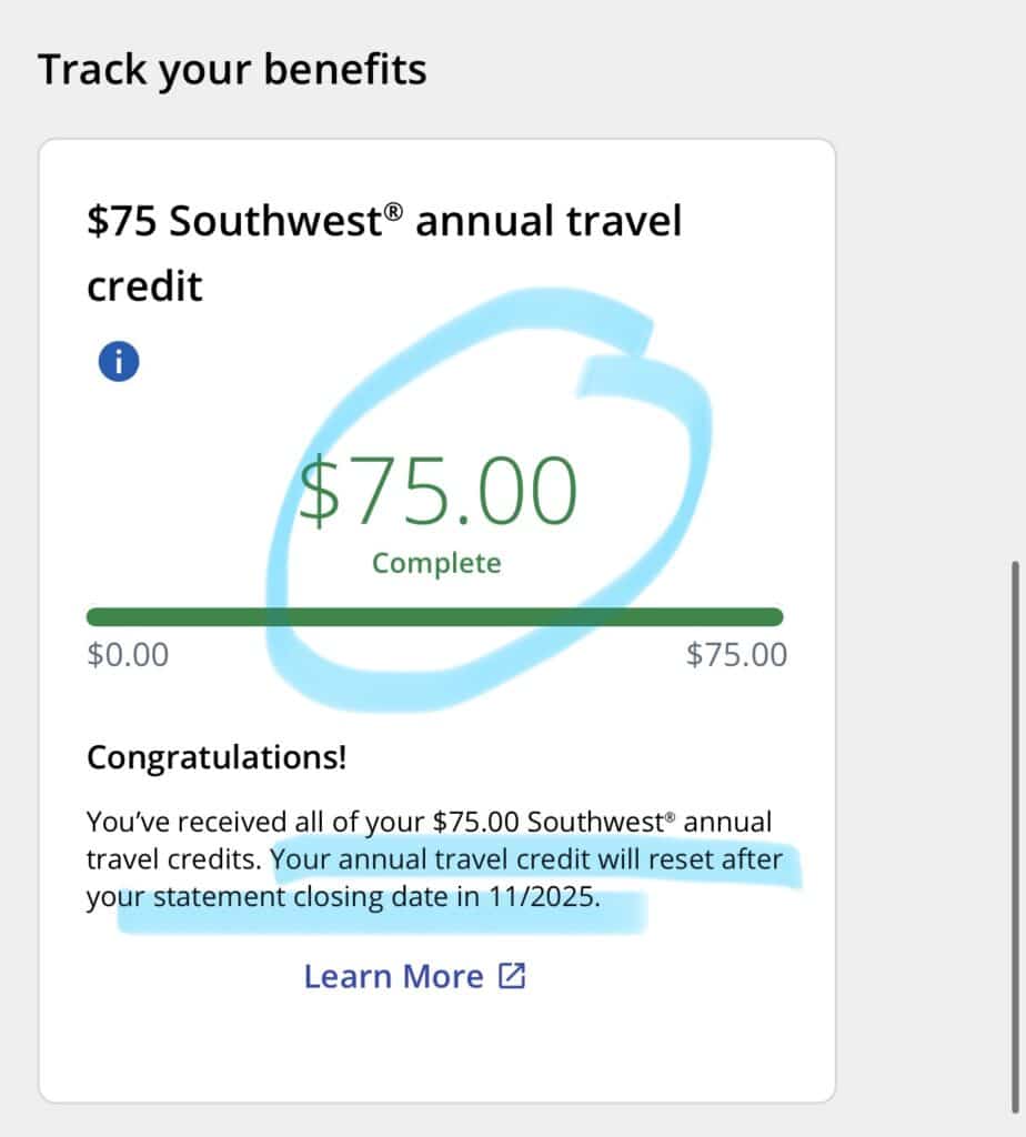 Southwest Travel Credit | $0 | $0 | $75 (ends Dec 2025) |