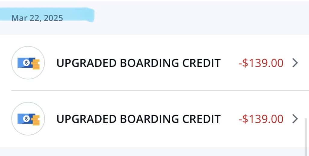 This showed me that I used 2 of my Upgraded Boarding credits in March 2025.