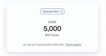 We’ve seen the referral rate elevated to 5,000 for a limited time. You can find your referral link and see if there are any elevated referral offers in your Bilt wallet.