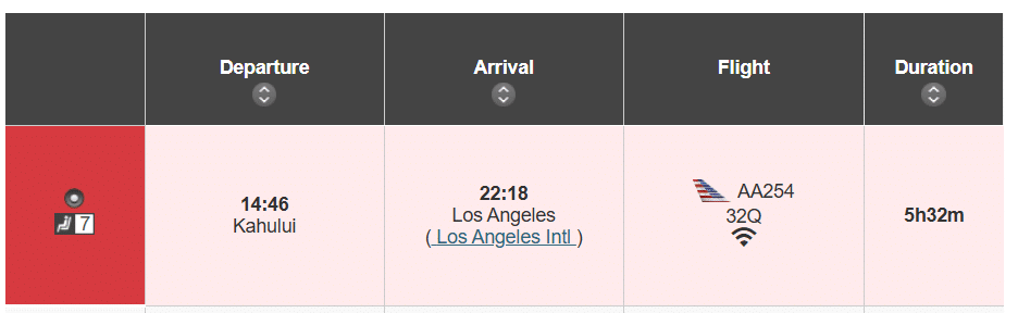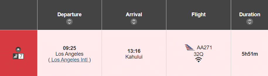 American Airlines Booking Example: LAX to OGG (on American) 45,000 points + $11