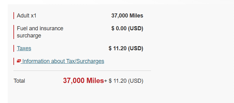 Cost: 13,500 each way when flying on Alaska, 15,000 each way on American. Taxes and fees are $5.60 each way. There is an extra charge to book over the phone so it’s best to book using the chat feature.