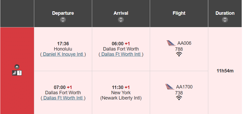 Japan Airlines Booking Example: EWR to HNL (on American) 50,000 points + $11