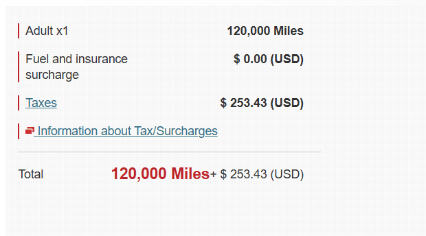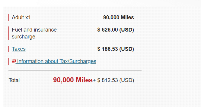 Notes: To pay fewer taxes and fees, you can book through Alaska onto a different carrier, but you'll pay more miles. As an example, you could book onto Qatar and pay fewer taxes and fees but the miles price is higher and those flights route through Doha which makes for a long journey.