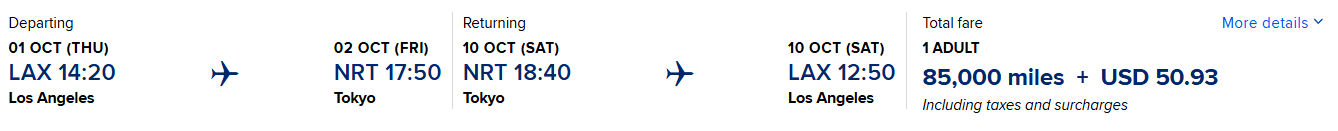 And don't forget that booking via a travel portal is still a strong option. It's not uncommon for flights to Japan to be in the $700-$1000 range which can put them as low as 48,000 points and include taxes.