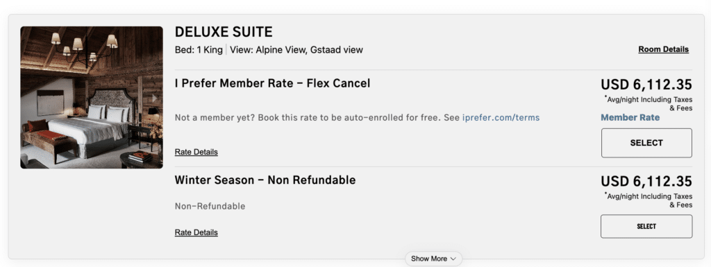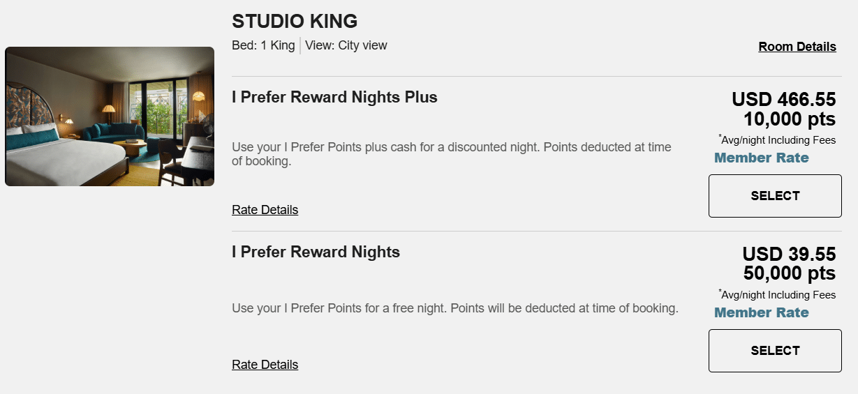 Only standard rooms are bookable with I Prefer points. Some hotels have multiple room types that count as a “standard room”, such as a king room or two queens.