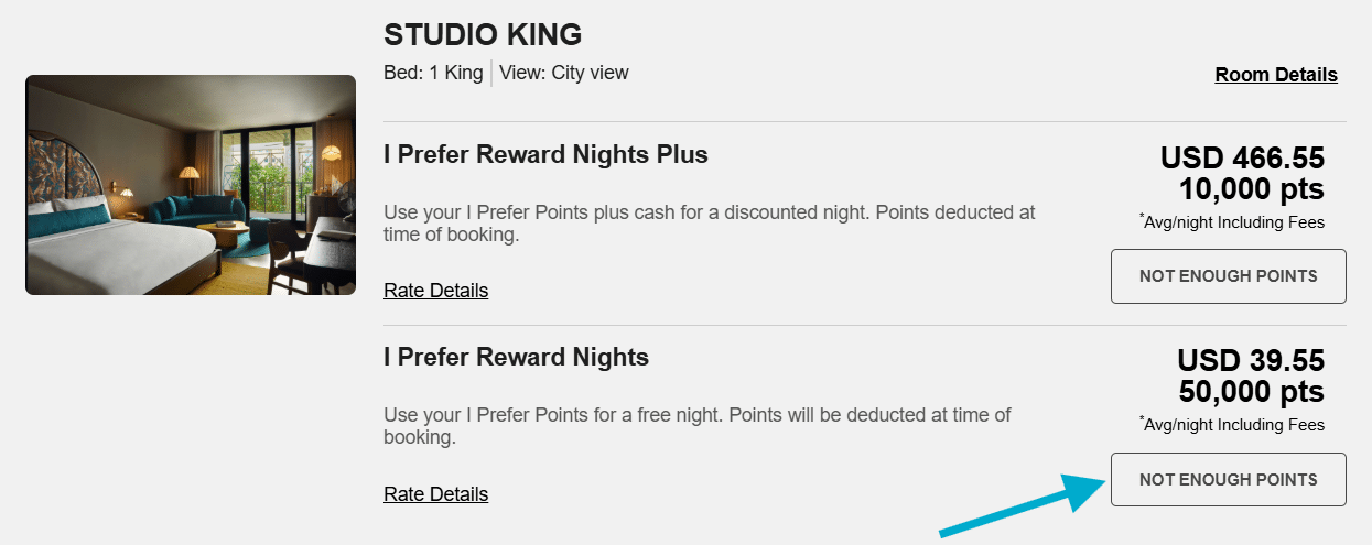 If a standard room is not available for your dates, you won’t be able to book that property with points.