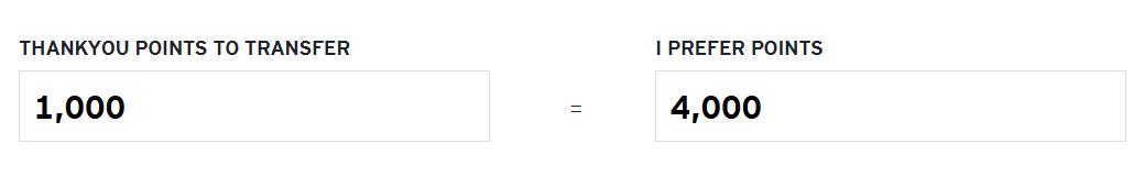 If you hold either the Citi Strata Elite℠ Card or the Citi Strata Premier® Card, you can transfer Thank You points to I Prefer at a 1:4 ratio. That means for every 1,000 ThankYou points you transfer, you will receive 4,000 I Prefer points.