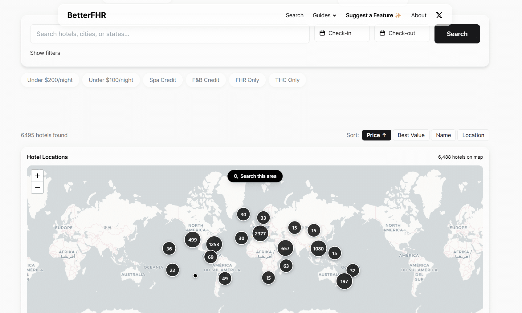 For instance, on the BetterFHR website, you can search for included hotels and filter the results by price, benefits, and more. This makes it much easier to find an eligible hotel that works for you.
