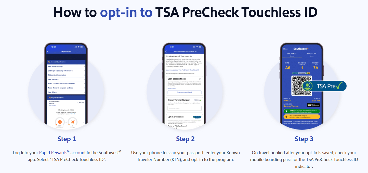 Here’s what the process looks like when opting in to Touchless ID with Southwest: