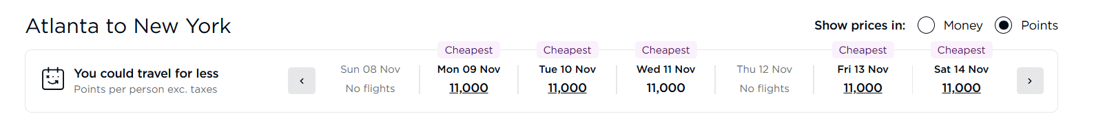 To find the cheapest dates, scroll through the calendar at the top of the page.